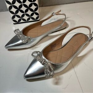 New BCBGeneration Kristin Silver Metallic Rhinestone Bow Slingback Flats 8