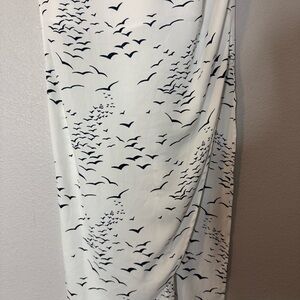 Chic white maxi dress with black abstract design. Perfect for stylish outings.