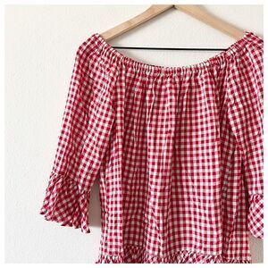 New BEACH LUNCH LOUNGE Gingham Off Shoulder Ruffle Top Sz M