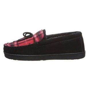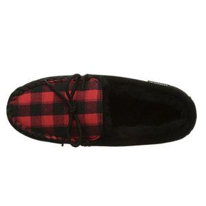 New BEARPAW Men Moc II Black Multi Red Plaid Slip On Slipper Shearling Lined 10