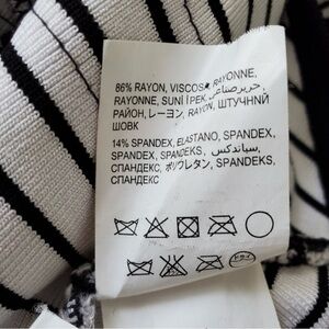 New BEBE Black White Bandage Crop Top Cap Sleeve Striped Keyhole Sexy Club XS