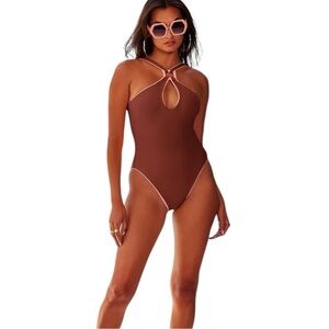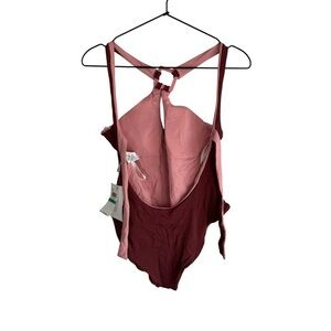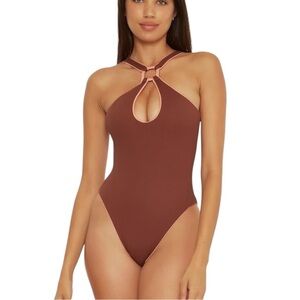 New! BECCA Rib Modern Edge High Neck Reversible Mikayla Cut Out Swimsuit