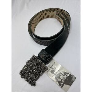 New BETSEY JOHNSON GREEN Solid Studded Rose Buckle LEATHER BELT SIZE L