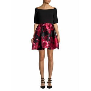 New! BETSY & ADAM Women's Two-Tone Off-Shoulder Floral Flare Dress Size 10