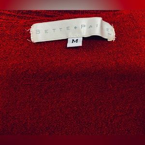New / Never Worn~ BETTE PAIGE deep ruby Red. stretch knit v-neck Pullover top. SPARKLY crystal Hearts design. Wonderful knit Rayon Nylon Spandex blend. Very fitted/Bodycon size S/M. Love it ♥️