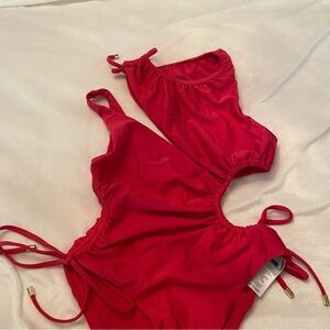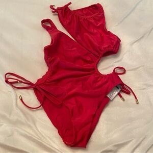 BFyne Dylan Virtual Pink Ruched Cutout One Piece Swimsuit Size Small