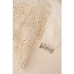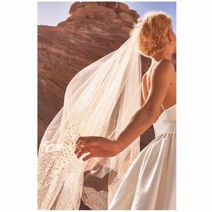 Carefully cut by hand from featherweight tulle, this veil is trimmed with gold sequins for an ethereal spark.