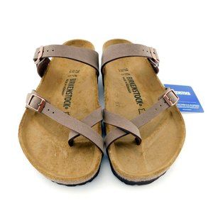 New BIRKENSTOCK Logo Buckle Brown Sandals EU39/US8