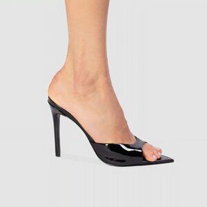 New BLACK SUEDE STUDIO Brea Mule in Black Patent leather high heel shiny stiletto open toe
