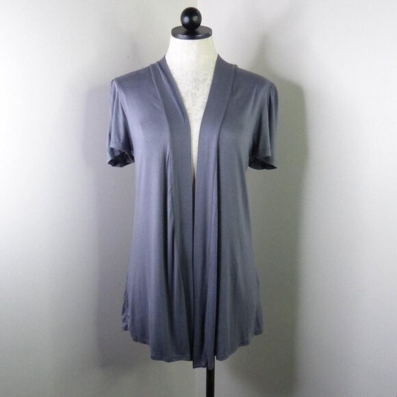 New B'Leev Juniors L Mesh Floral Back Draped Open-Front Short Sleeve Cardigan