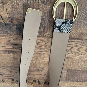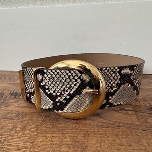 Snakeskin embossed leather belt. Buckle closure. Measures approx 2.25" H.Buckle measures approx 3.25" H. Made in Italy. Revolve Style No. BLOW-WA100.