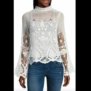 NWT PROJECT RUNWAY Project Runway Bell Sleeve Lace Top (unlined) M