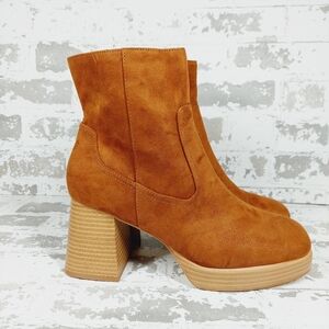 New BP Keyla Platform Brown Faux Suede Chunky Bootie X63