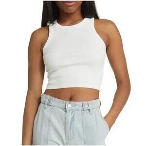 New BP. NORDSTROM Women's White Blanc Rib Crop Tank Top Size M