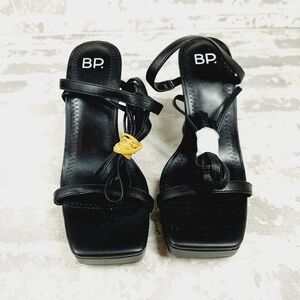 New BP Netta Platform Black Vegan Leather Strappy Sandals H363