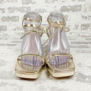 New BP Netta Platform Gold Metallic Strappy Sandals H976