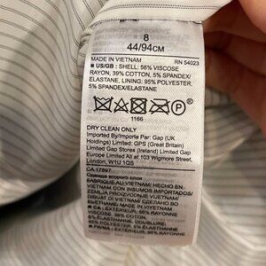 Banana Republic suit jacket featuring a notched collar, single-breasted button closure, flap pockets (still sewn up but easily opened), button cuffs, pinstripe lining, and a midweight viscose/cotton fabrication enhanced with stretch for added comfort. Muted olive green shade--perfect for fall!