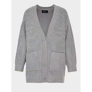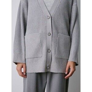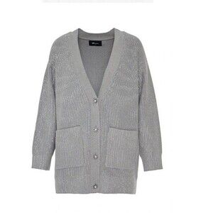 New BSB Women Knit Holiday Occasions Cardigan Buttons Grey Melange Sz M Sweater