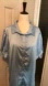 NWOT~ Elegant baby blue satin blouse with button-up front and short sleeves. Matching pearl-look buttons. Puffy short sleeves. No brand tag. Never worn, but missing the top button. It’s far more beautiful in person than the pictures. I couldn’t quite capture the lovely shade of blue.