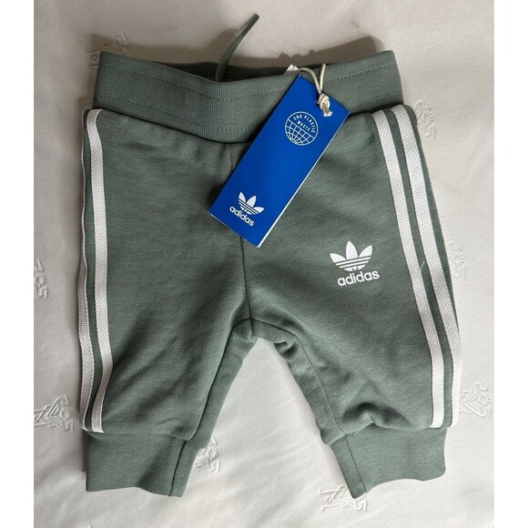 New Baby Boys ADIDAS ORIGINALS Cuffed Fleece Tracksuit Bottoms Age 0-3Y Green
