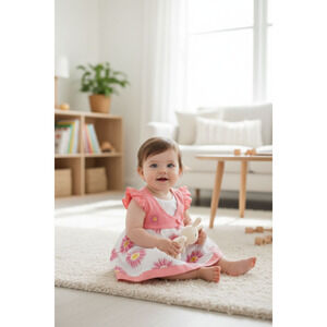 Bright, cheerful, and perfect for your little blossom—this adorable dress set from We’re Kids features a lovely pink bodice with ruffled sleeves paired with a flowy white skirt covered in pink and yellow daisy prints. The cute layered look adds charm while keeping your baby comfortable and stylish.