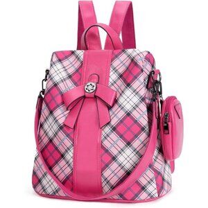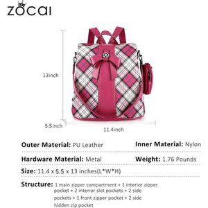 Brand New *Product Dimensions:5.5 x 11.4 x 13 inches; 2 Pounds *Department:womens *This anti-theft backpack is of medium size. Suitable for tablets under 11.5 inches.Not suitable for laptops of any size. *The main pocket of this backpack features a back zipper opening design.The opening size is relatively small compared to the top opening backpack. *This Backpack is made of vegan leather. There will be no irritating odor. *Its size belongs to medium size.12.5 x 5.5 x 13 inches(L*W*H). Weight:1.02 Kg, 2.2 pounds. It's a bit heavy in a medium-sized backpack. *This cute bow backpack purse for women with small bag is made with high quality vegan leather *The front panel and bottom are Special Frame Design. It can be described as a fixed shape backpack. *The back straps are adjustable. Single shoulder strap is removable. *Please don't doubt it if you think the back zipper is sewn backwards. That's exactly what we designed: a reverse zipper! *This leather backpack purse for women has enough space to meet the needs of daily outings and is also suitable for short-term travel(Not recommended as a laptop backpack). *Perfect Stitching Cute Bow Backpack Purses for Women with Small Bag Exquisite bow