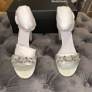 New in box. Badgley Mischka Tempest Embellished Block Heel Sandals. In the color soft blue radiance. Originally $235.