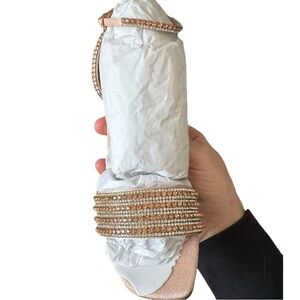 New! Badgley Mishka Becca Strappy Block Heel Rhinestone