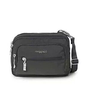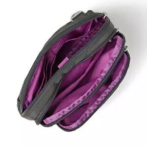 New Baggallini Triple Zip Bagg Charcoal Purple Lined Crossbody Strap Waist Pack