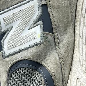 Upper: Gray suede overlays with breathable mesh panels; padded tongue and collar; reflective accents.