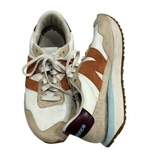 The New Balance 237 Sea Salt Soft Copper Casual Shoes in size 8.5 are a stylish and comfortable option for women. The sneakers feature a sea salt and soft copper color combination with suede upper material, making them both fashionable and durable. With a classic sneaker style and the reliable New Balance brand, these shoes are perfect for everyday wear or casual athletic activities. Released in 2022, the New Balance 237 model offers a timeless design that is sure to become a staple in any woman's shoe collection.