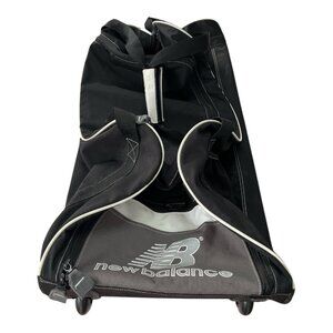New Balance 30" Rolling Duffel Bag – Black with White Trim, 3 Mesh Pockets, Side