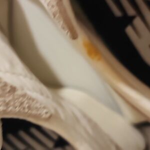 Worn a few times. There's some spots on them as pictured. The bottom is a navy color, not black. The white park seems kinda crinkly. I can't remember if thats how they've always been or not though.