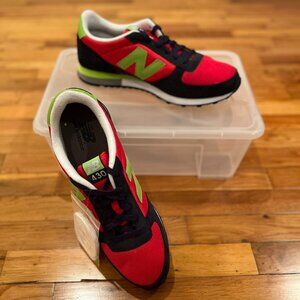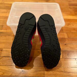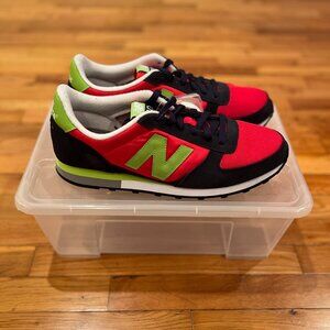 Brand NEW, never worn. Bright red mesh and suede upper, with black overlays and laces. Lime green “N” logo and tongue tab accent. White inner lining and midsole. This model is part of New Balance’s retro-inspired casual line, designed more for everyday wear than performance running.