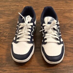 Stylish New Balance sneakers in navy and white. Perfect for casual wear.