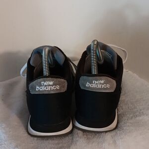 Step out in style with these New Balance women's athletic shoes. Size 8.5.Featuring a sleek black design and ripple sole. Cushionedinsolesforcomfort, these shoes offer both comfort and fashion for everyday wear.