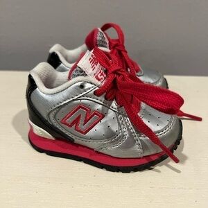 Pink/gray/black New Balance 525 tennis shoes. Very good condition! Size 3.