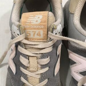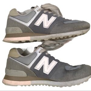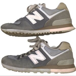 New Balance Men 6.5 574 Gray Pink Classic Suede Running Shoes ML574BSG.