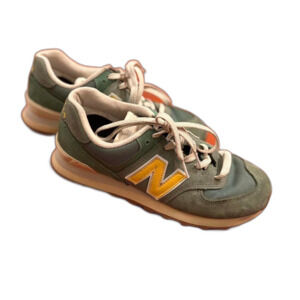 New Balance 574 Women's Mallard Green Yellow White Trainers Size 6.5