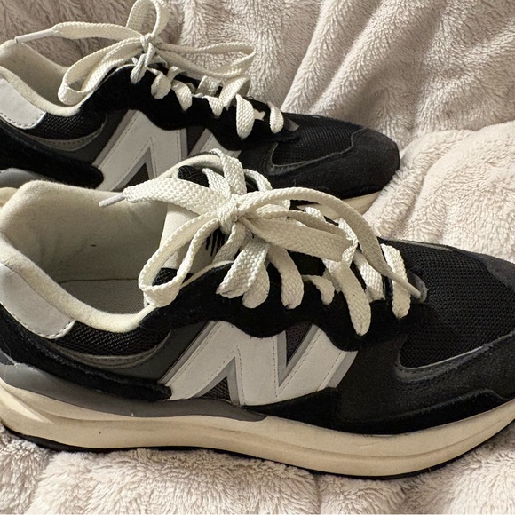 Stylish New Balance sneakers in black and white. Comfortable and trendy design. Never worn by me, previously purchased off of here and look to be barely worn. Run a little narrow, but otherwise true to size. Men’s 7.5, so women’s 9.