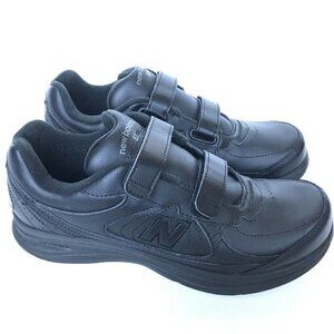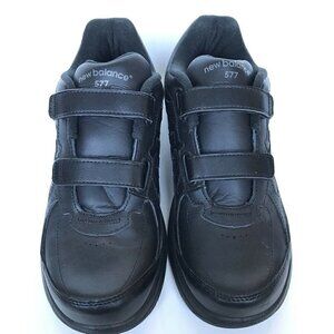 New Balance 577 Black Leather Hook and Loop Comfort Walking Shoes Mens Size 9 USA Excellent Condition