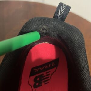Also has a minor rub spot on inside left shoe by ankle shoestring area and on inside heel liner, and on small spot on left toe box (See last 3 pictures for details)