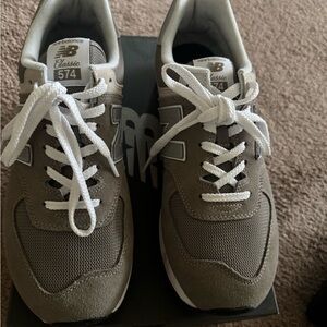 Stylish New Balance sneakers in gray. Features a classic design with white laces. Only wore once. only selling to buy a different pair of shoes. Or Best Offer