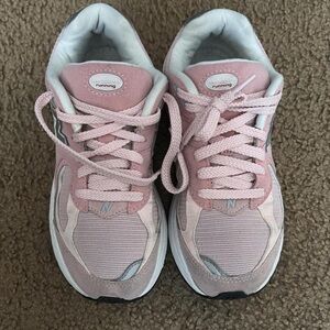 Chic New Balance shoes in blush and white. Perfect for everyday wear.