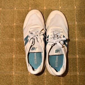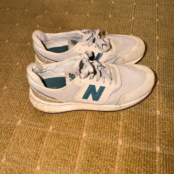 Guc. New Balance sneakers, gray and teal. Size 9.5.