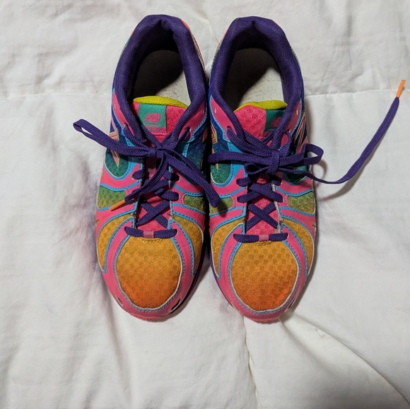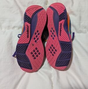 Vibrant sneakers with a mix of pink, orange, and purple. Perfect for adding a pop of color to your workout.