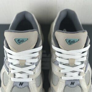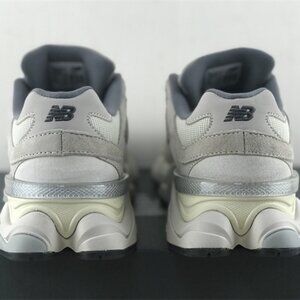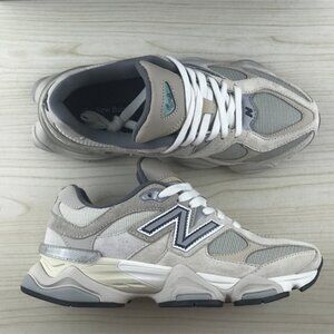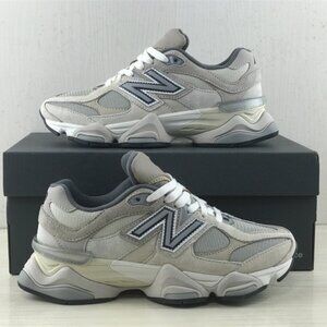 The New Balance 9060 features a gray and black synthetic upper, with the gray upper constructed from mesh, suede, and synthetic leather. A gray "N" logo is embellished on the side of the shoe, and "NB" is printed on the tongue. The midsole is gray and incorporates ABZORB's natural cushioning system. The outsole is black and made of rubber.