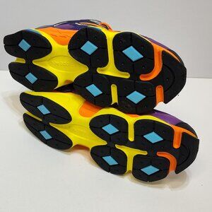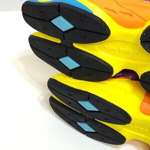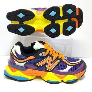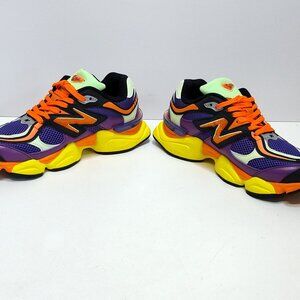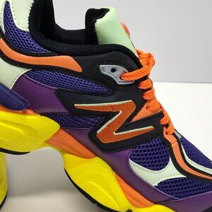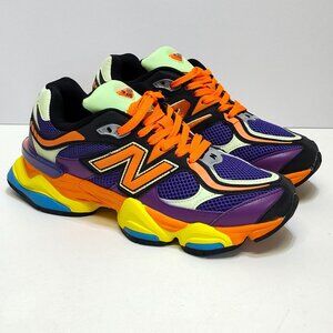 These New Balance 9060 sneakers encapsulate a bold, effervescent design with their vibrant colorway and innovative construction. Crafted with a mesh and leather upper, they provide a breathable yet durable fit. The dual-density ABZORB and SBS midsole cushioning technology ensures optimal comfort and shock absorption. A jeweled NB 9060 tongue patch adds a distinctive, stylish touch, perfect for those who appreciate both performance and flair in their footwear.
