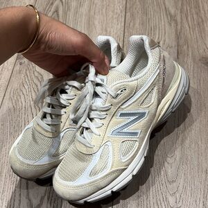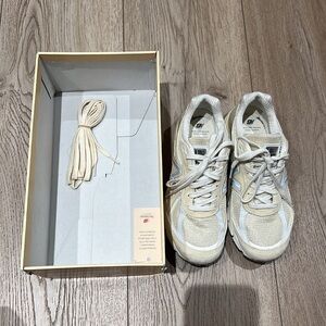 Men’s Size 5.5 fits a U.S. women size 8/ in great condition/ cream with white detailing/ no scuffs slight discoloration as shown in photos/ comes with box/ new shoe laces available