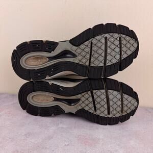 There are stains on the midsoles, and the suede is scuffed and worn, which is general wear; see photos for condition.